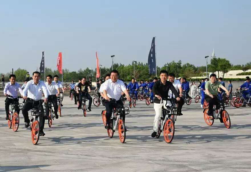 伦特集团员工参加沧州渤海新区摩拜单车启动仪式